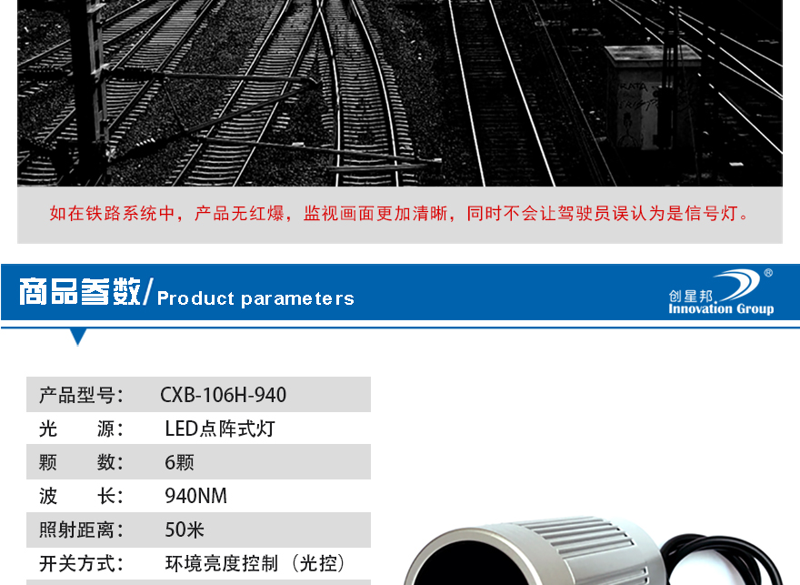 - 940nm無紅爆補光燈 CXB-106H-940