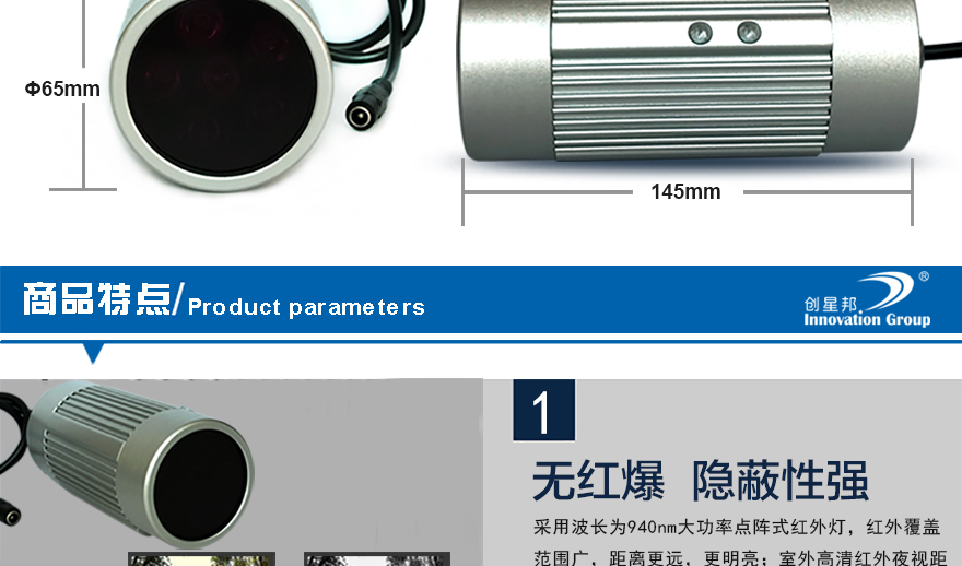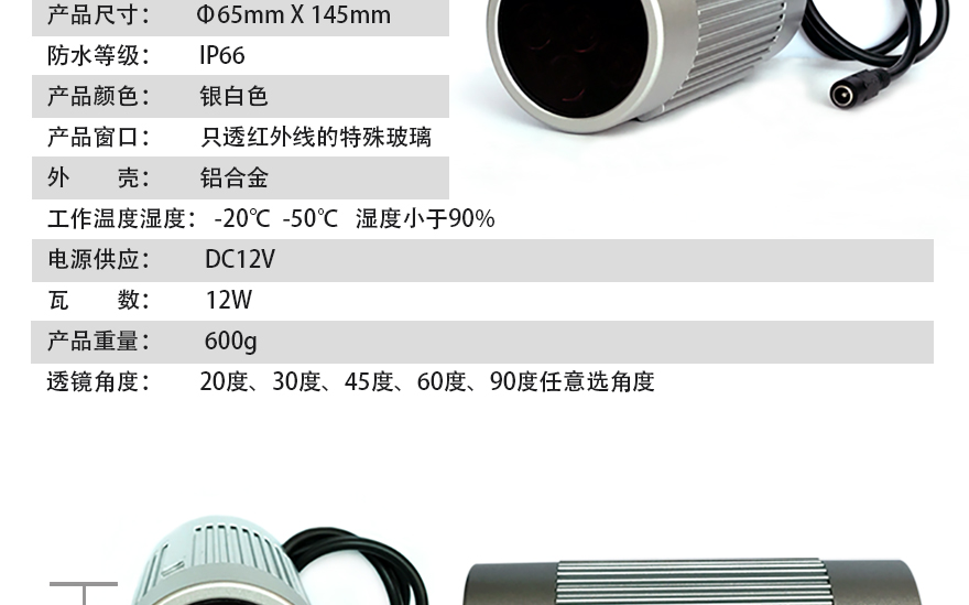 ★ 940nm紅外波長,識別距離50米,可視距離可達80米;