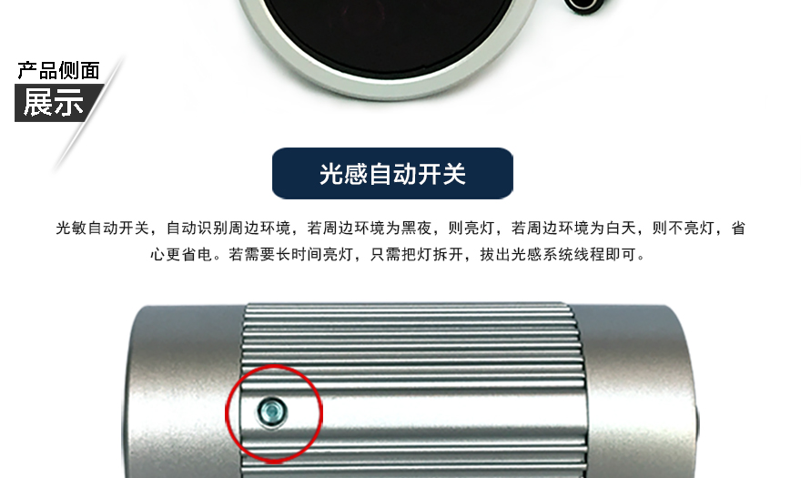 ★內(nèi)置智能光控開關(guān)、可以根據(jù)環(huán)境光線自動開啟;