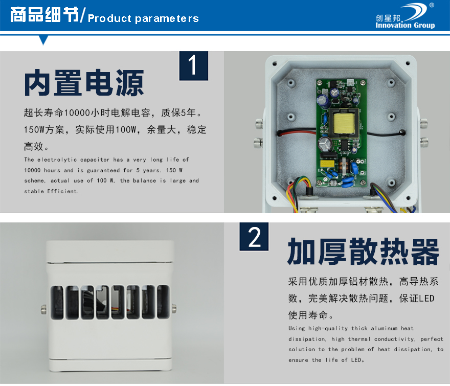 ★鋁合金壓鑄外殼,加厚鰭形散熱后蓋,散熱好,壽命長;