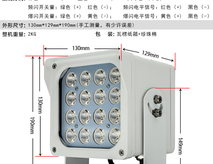 ★發(fā)光脈沖寬度可調(diào),適應各種攝像機的曝光時間;